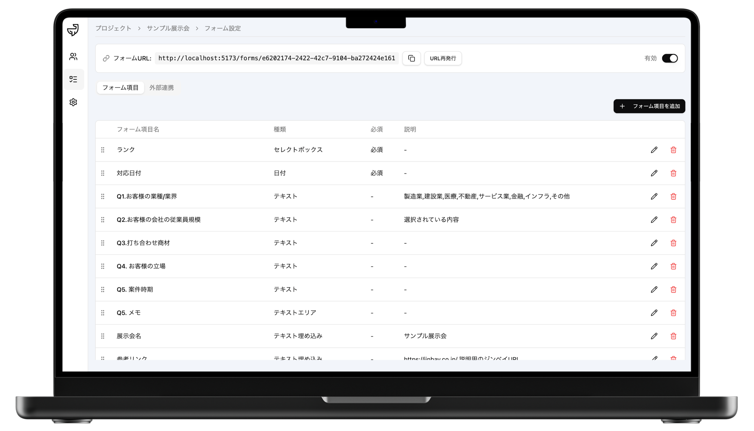 エンジニアの支援なしで、接客情報の項目を自由にカスタマイズ。展示会ごとの運用に柔軟に対応。